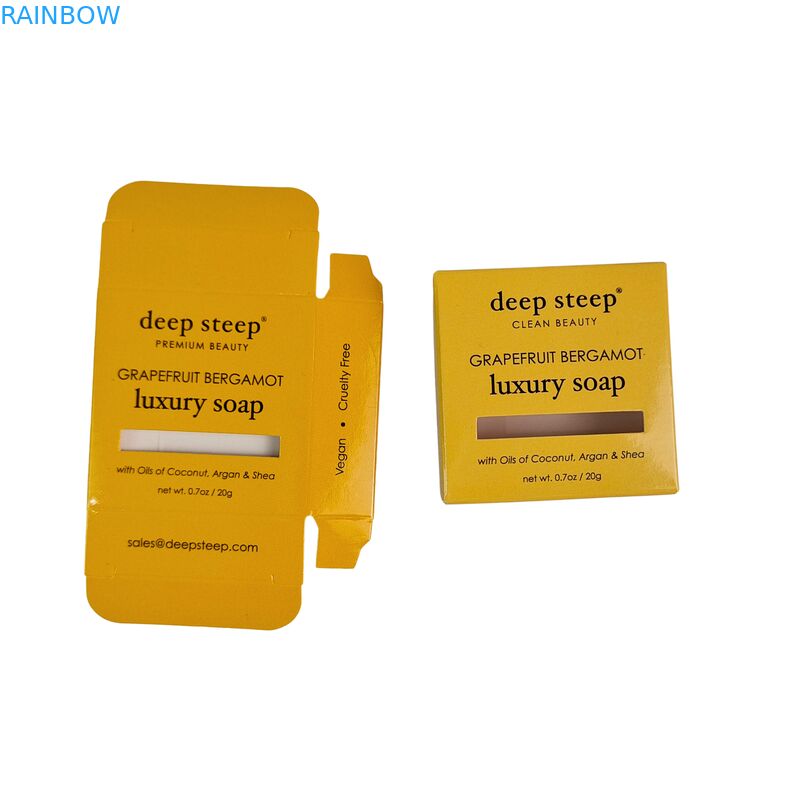 Parlak laminasyon ve spot UV kaplamalı kraft kağıdından üretilmiş, biyolojik olarak çözünebilir, katlanabilir, birinci sınıf karton ambalaj kutusu. Lüks kozmetik ürünleri, sabun ambalajları ve birinci sınıf tüketim malları için idealdir.