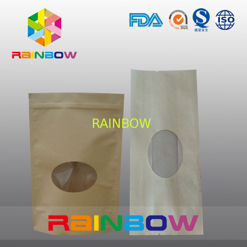 Ön oval pencere ile Doypack kraft kahverengi kağıt çay poşetleri ambalaj